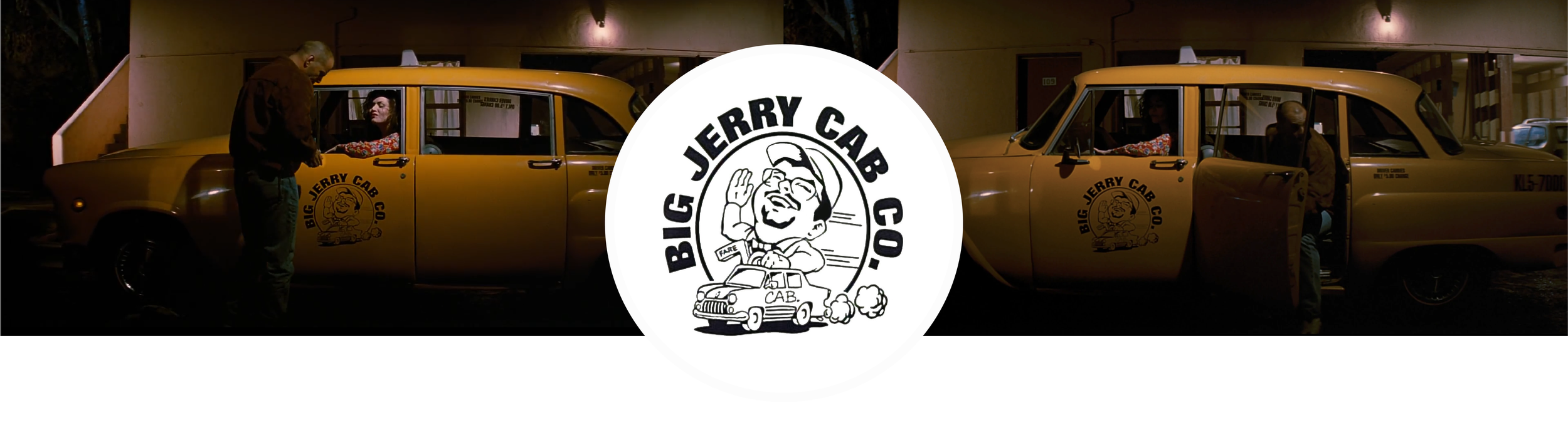 La compagnie fictive de taxis Big Jerry Cab co apparait dans Pulp Fiction lorsque que Butch Coolidge (Bruce Willis) sort du taxi et règle sa course. Le logo, imprimé sur la portière avant, a été créé par Jerry Martinez, ami de Quentin Tarantino. C’est d’ailleurs par leur amitié et son surnom qui a inspiré le nom de cette marque fictive.