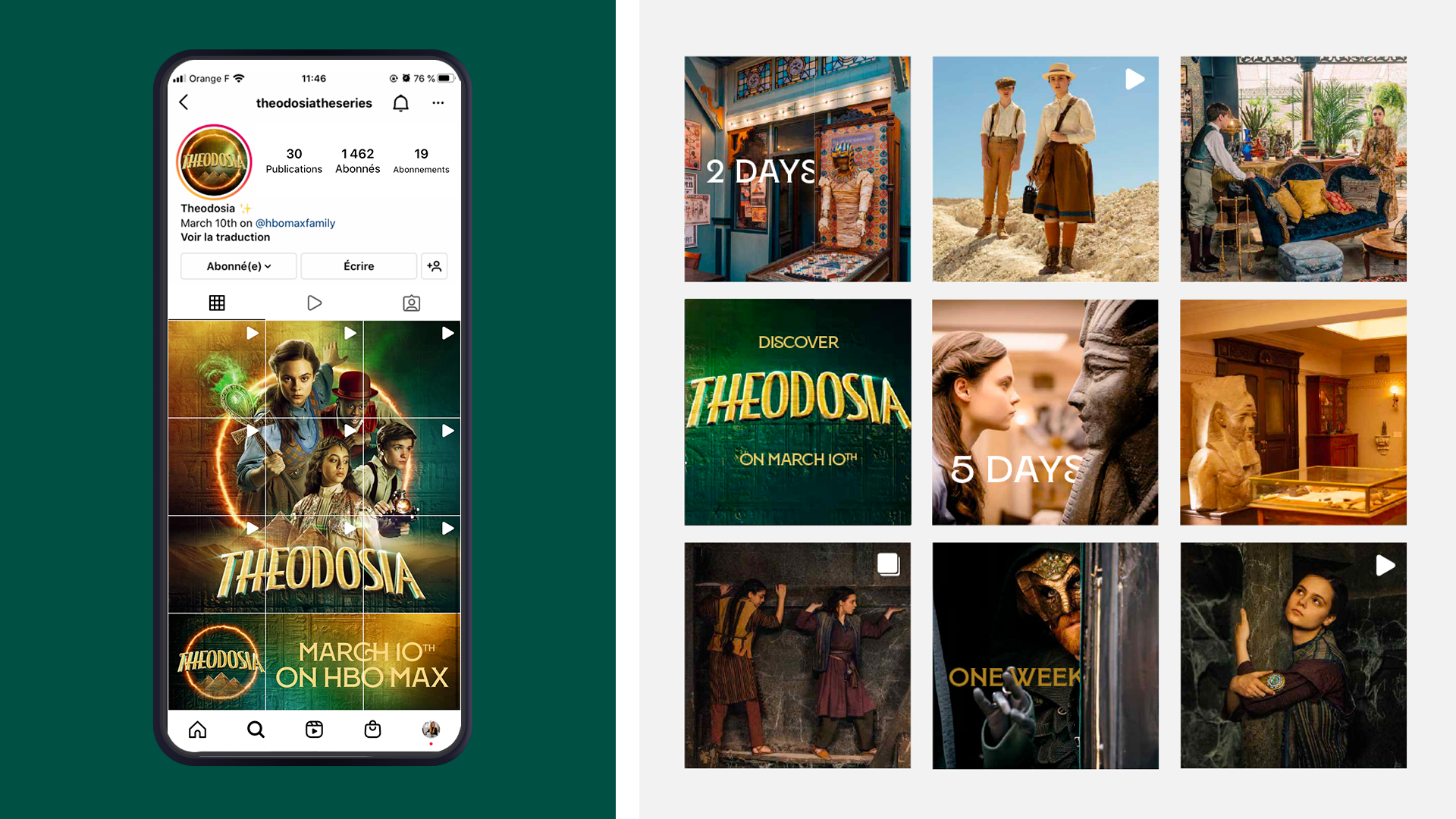 Élaboration de la stratégie de communication et direction artistique pour accompagner le lancement de la série Théodosia sur HBOMax.